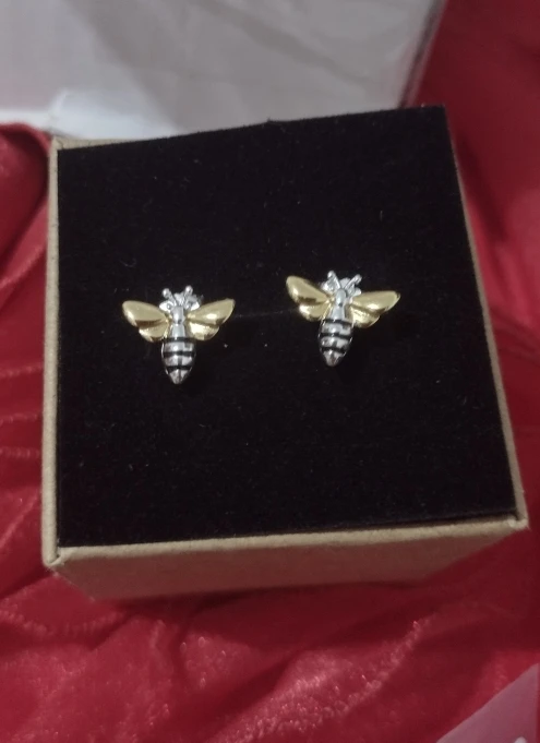 Bees Earrings ,Real 925 Sterling Silver Earrings Designer Fine Jewelry Lovely 18K Gold Honey Bee Stud Earrings for Women Gift .