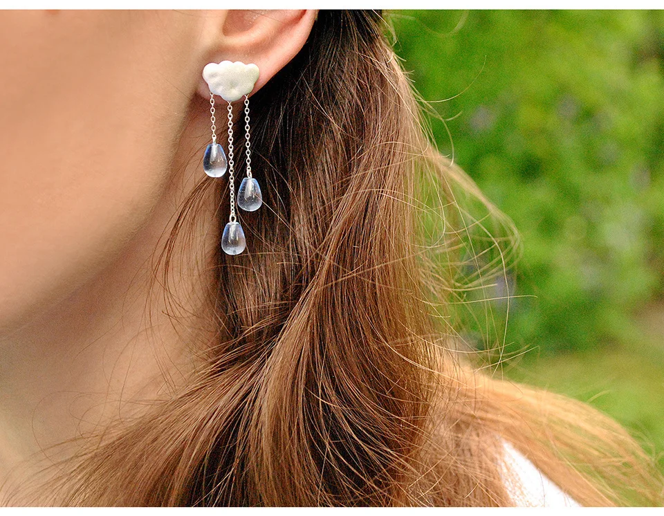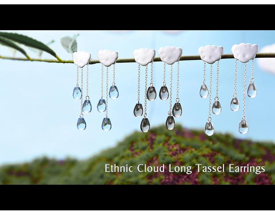 Cloud Long Earrings , Real 925 Sterling Silver Natural Crystal Gems Fine Jewelry Ethnic Cloud Long Tassel Drop Earrings for Women Brincos .