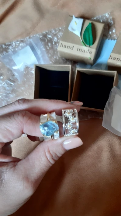 The ring is almost the same as in the photo, it fits 6,5 well. If you have a smaller finger, it may be a little too big, but increase it up without problems. 4 stars, because in fact the ring turned out to be somehow flimsy and thin, it looks more solid in the photo. But in general, cute summer ring, I will wear it.