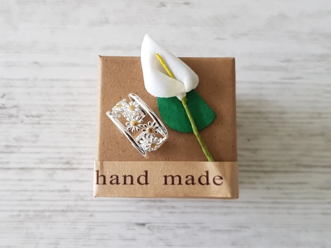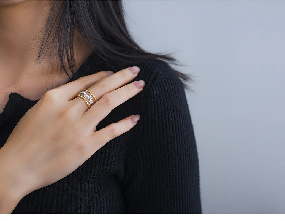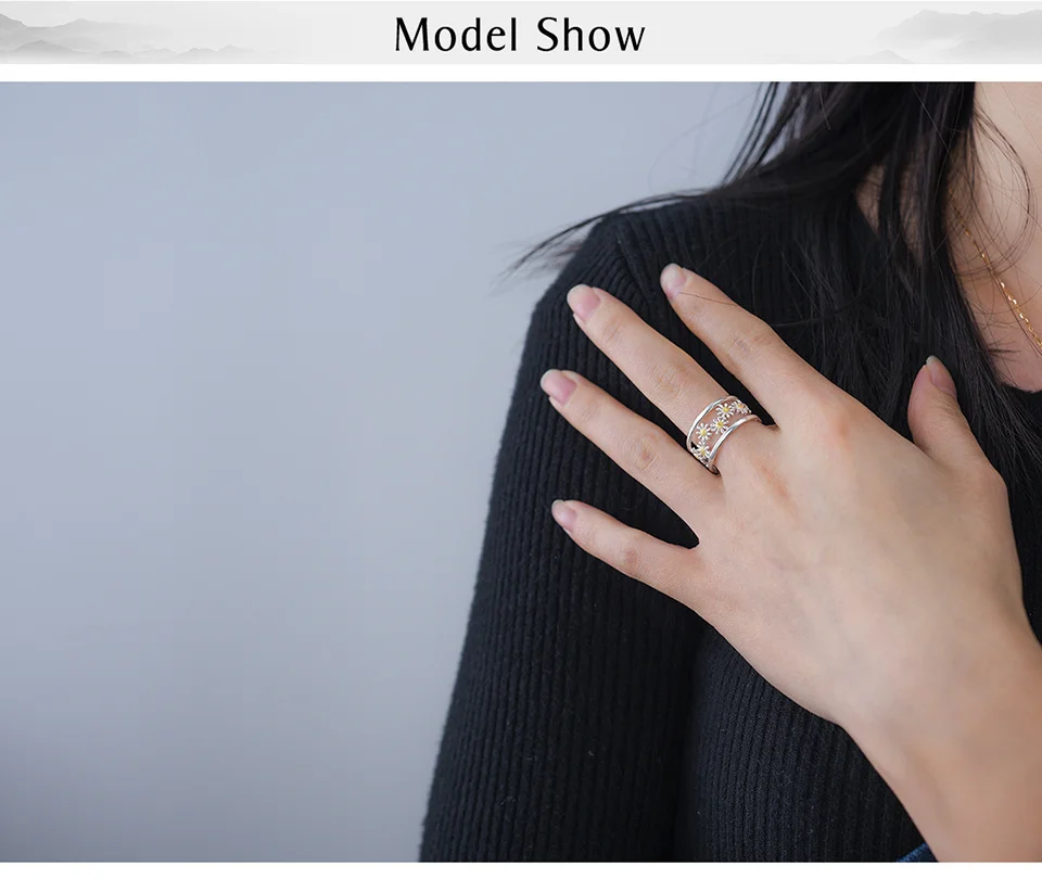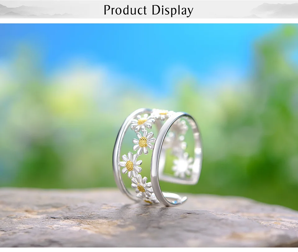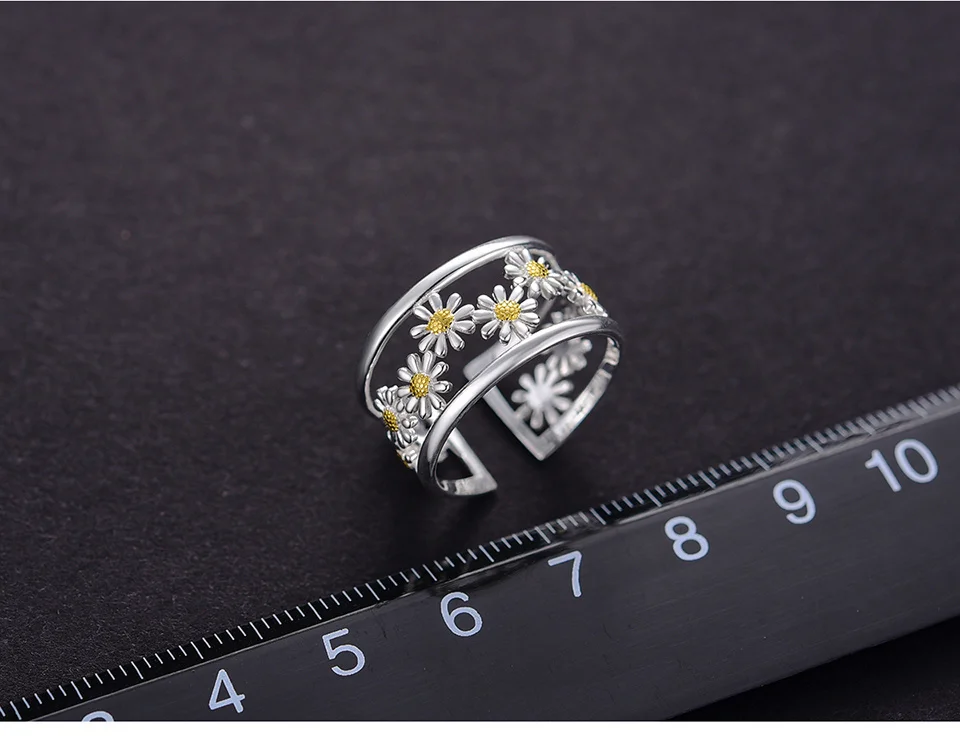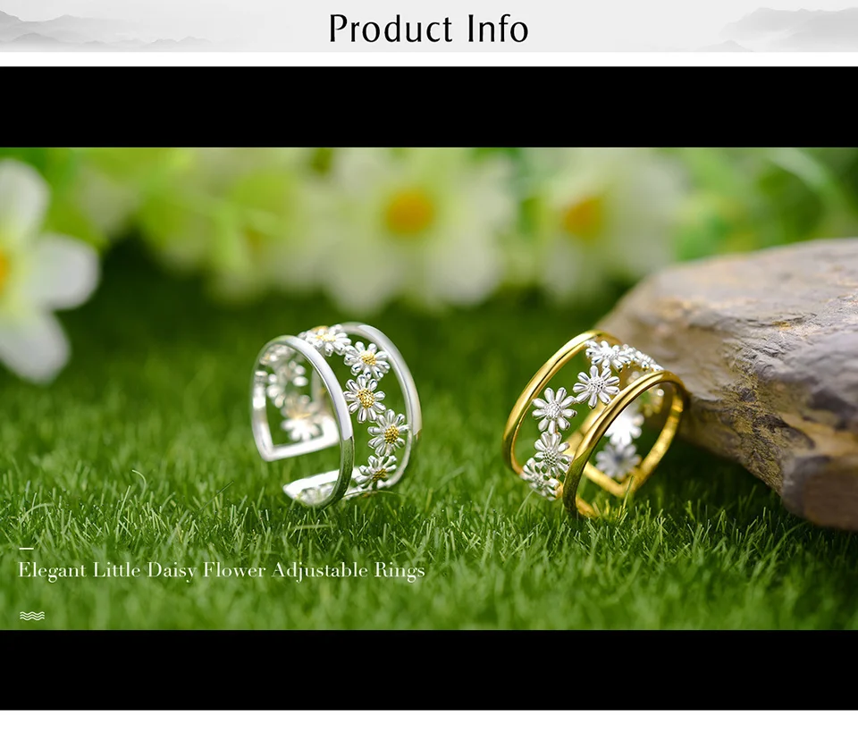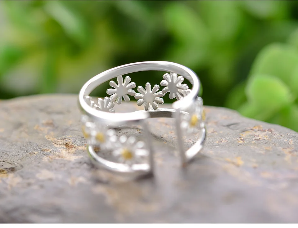 Daisy Flower Rings , Elegant Little Daisy Flower Adjustable Rings for Women Real 925 Sterling Silver Original Luxury 18K Gold Fine Jewelry .