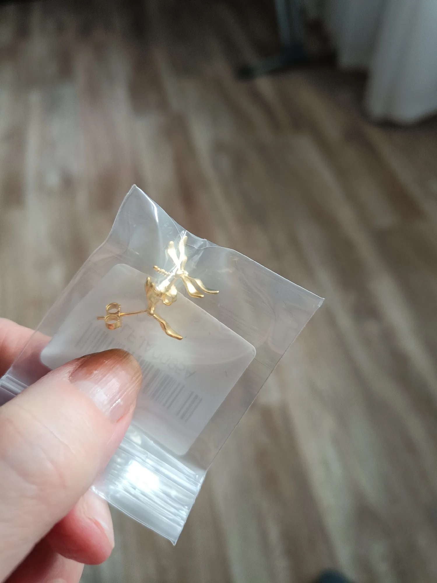 Very beautiful earrings, it looks beautiful on the ears, but it seems to me fragile, you are afraid to break them. The parcel arrived earlier than the stated time. Thanks to the seller for such beauty.