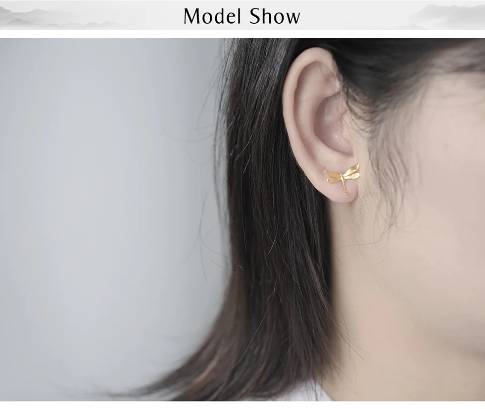 Dragonfly New Earrings ,Real 925 Sterling Silver Cute Tiny Dragonfly New in Stud Earrings for Women 18K Gold Designer Fine Jewelry Girls Gifts .
