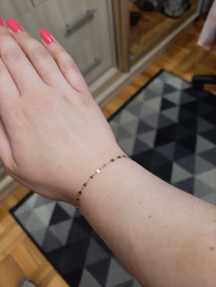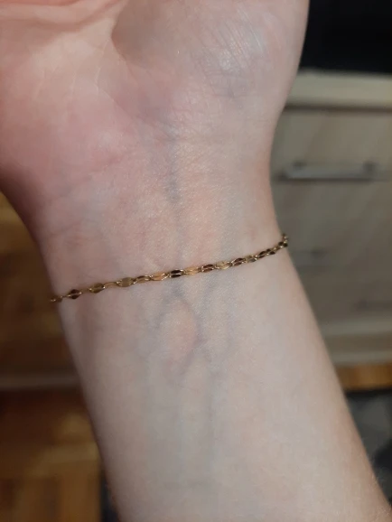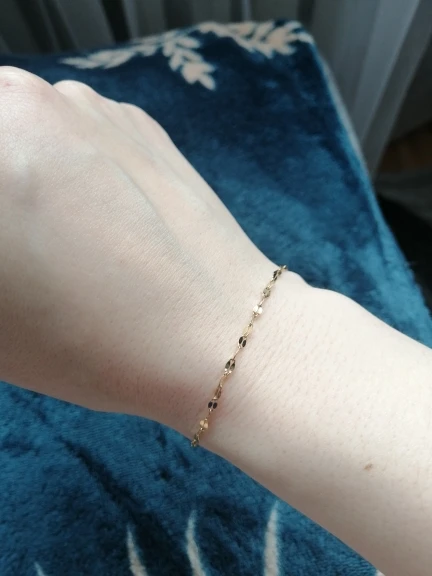 A beautiful neat bracelet, despite the small links, does not break. Does not darken