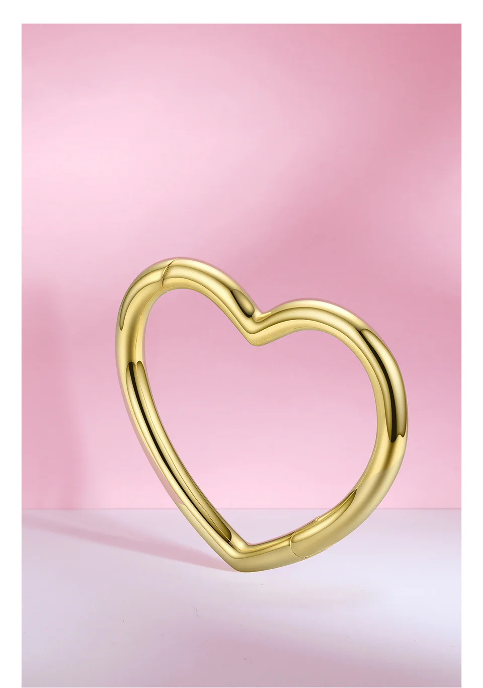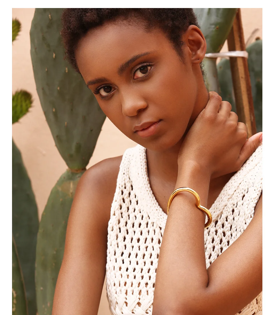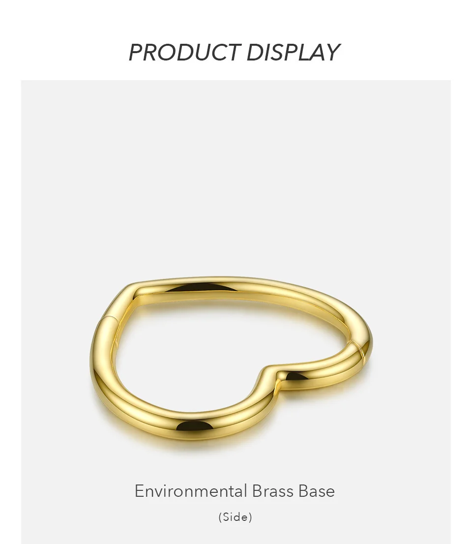 Heart Cuff Bangles For Women Accessories Gold Color Brass Bracelets Fashion Jewelry.