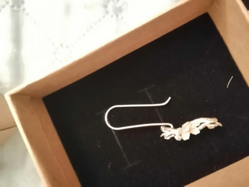 Beautiful and graceful earrings. Hang reliably in my opinion. Napkin and box included)