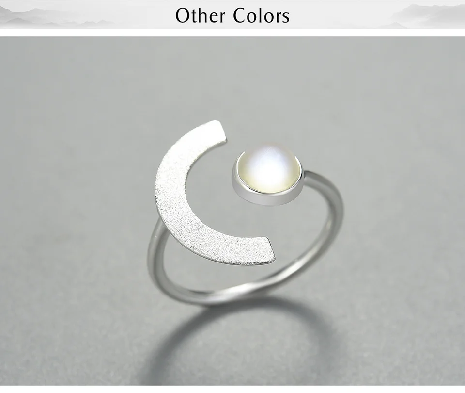 Moonlight Rings , 18K Gold Minimalist Moonlight Adjustable Moonstone Rings with Stone for Women Real 925 Sterling Silver Fine Jewelry .