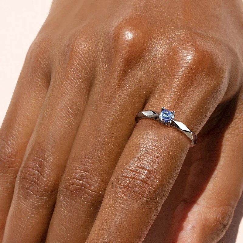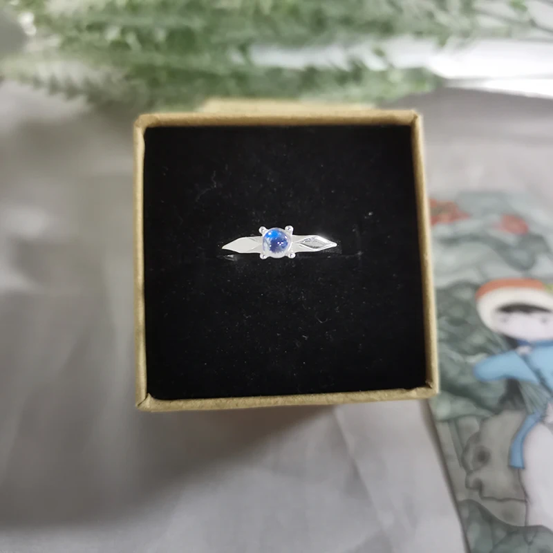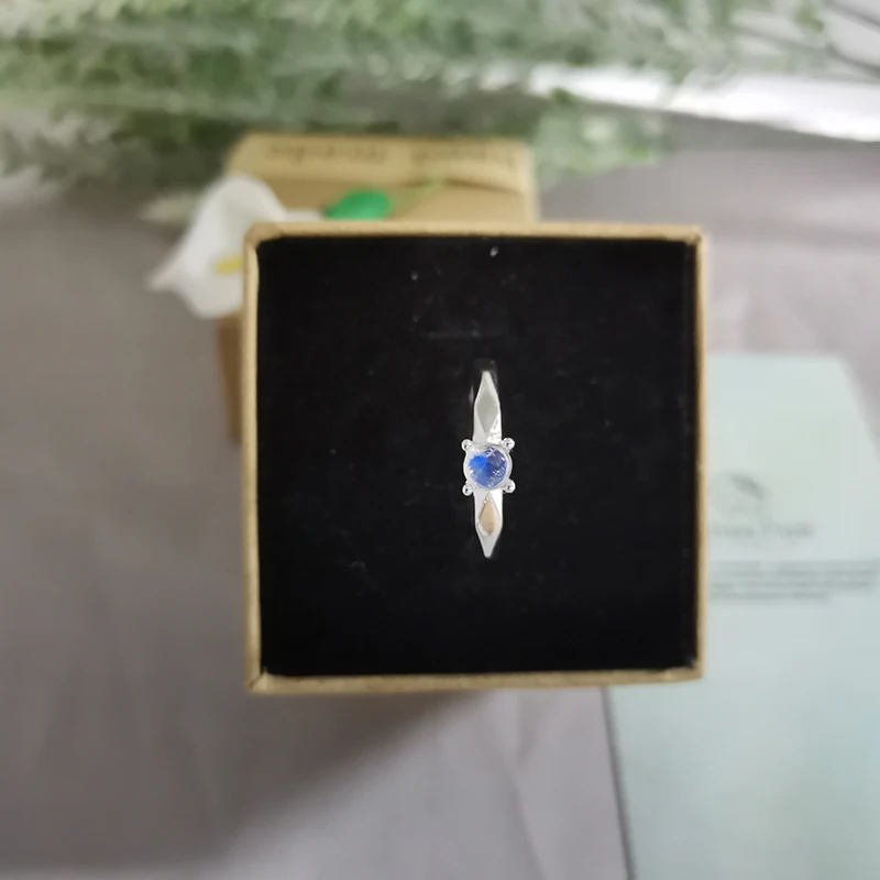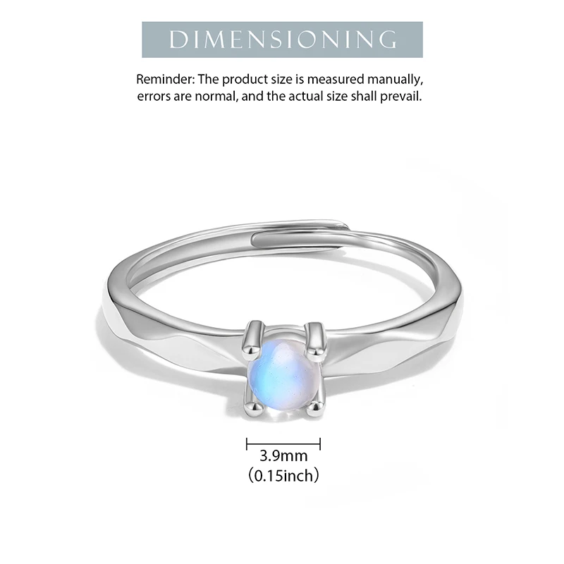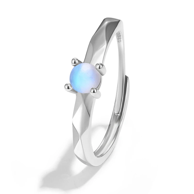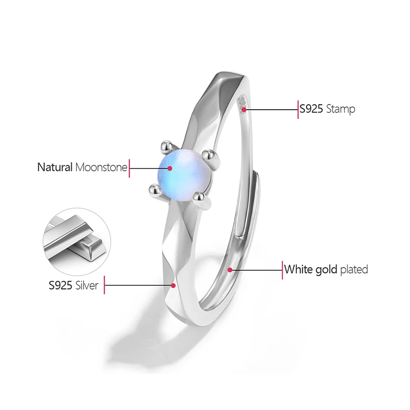 Natural Blue Moonstone Rings , Simple Round Adjustable Rings for Women Real 925 Sterling Silver Plated White Gold Fine Jewelry .