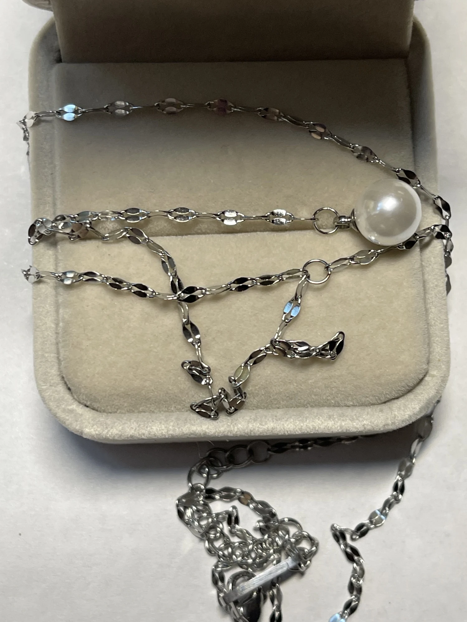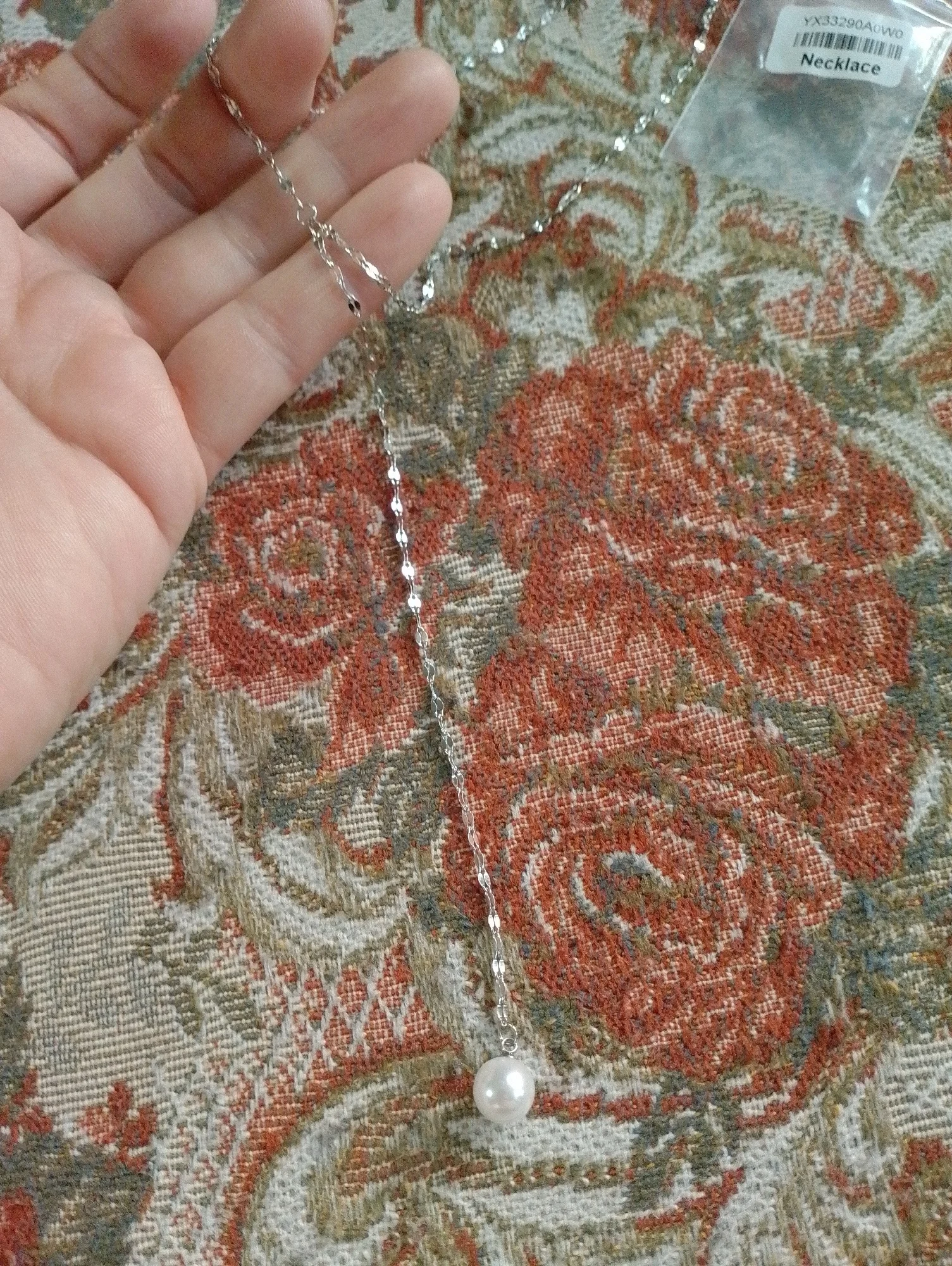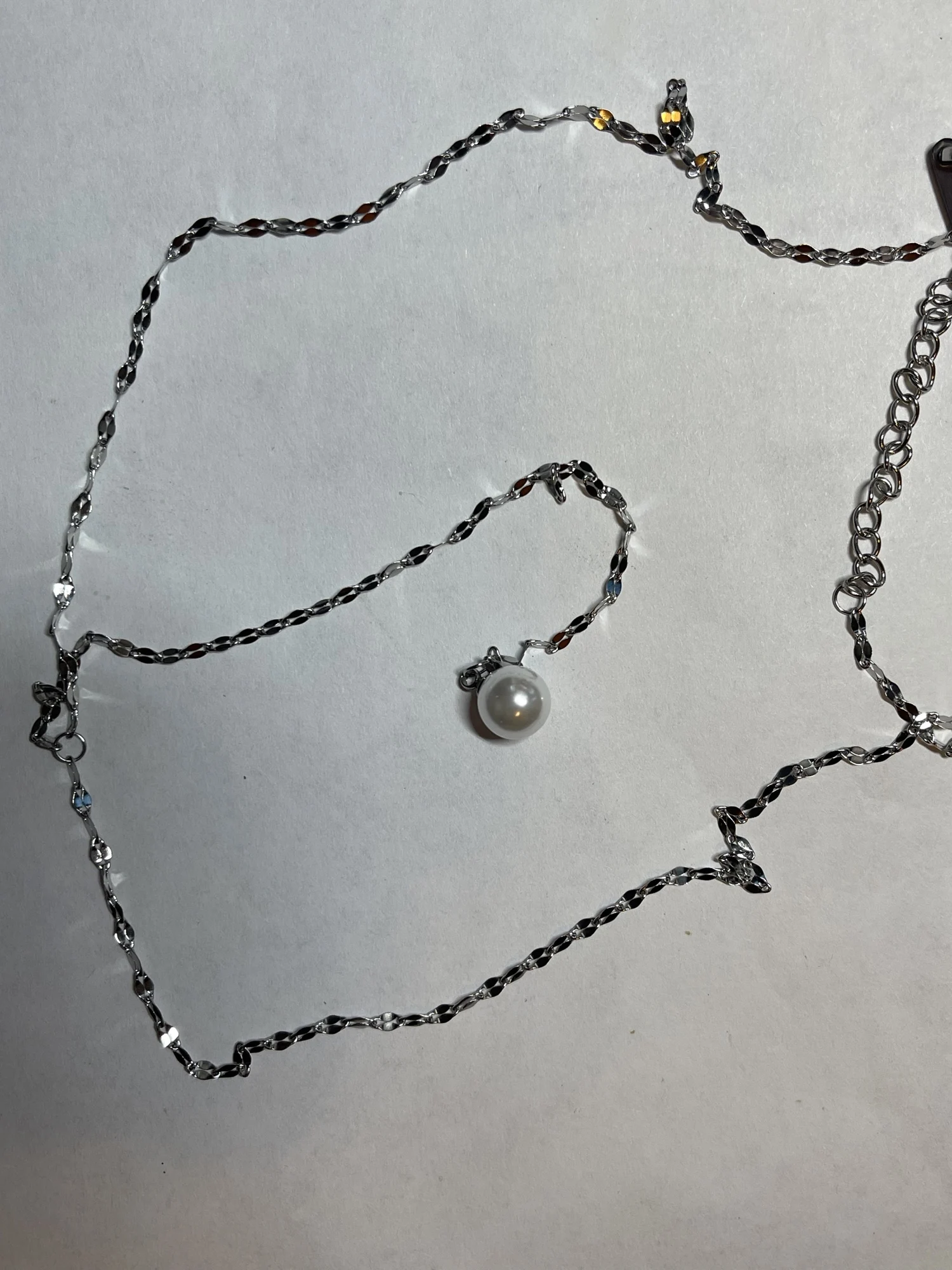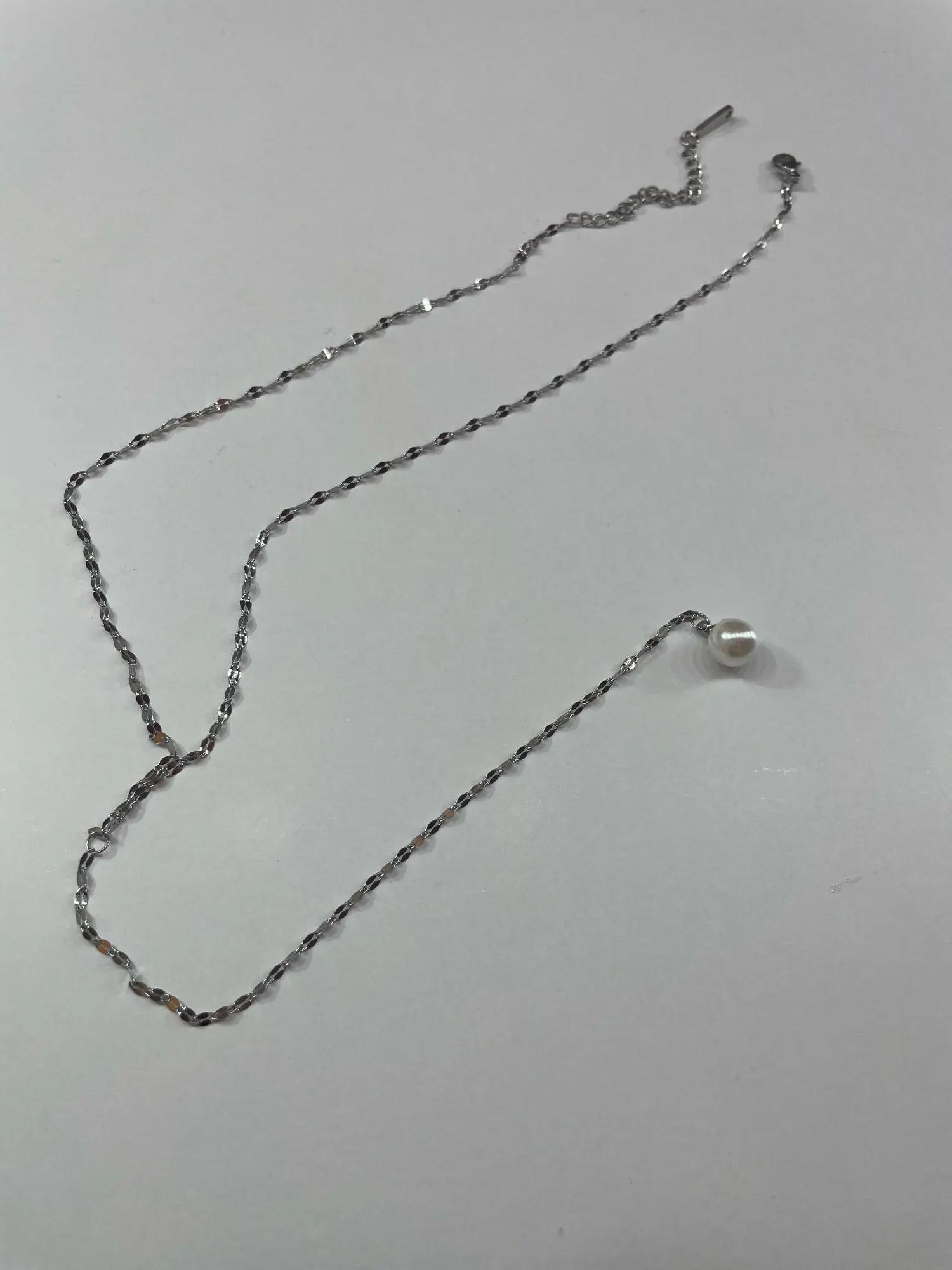 Cute, delicate necklace with a little artificial Pearl, as described by the seller.