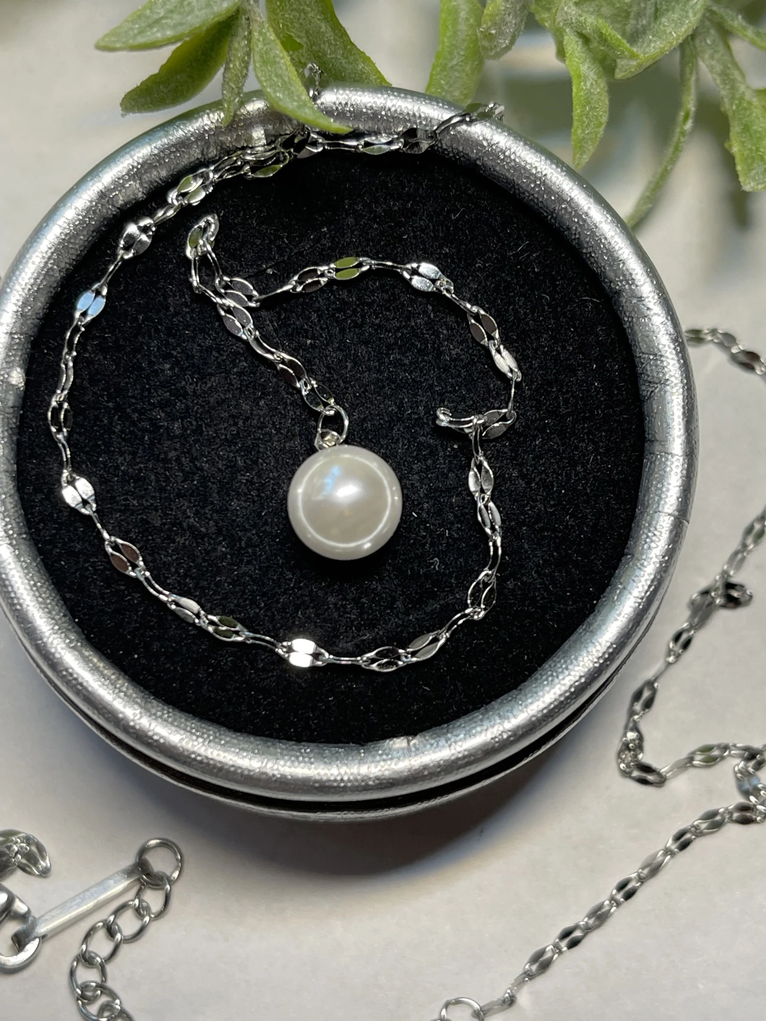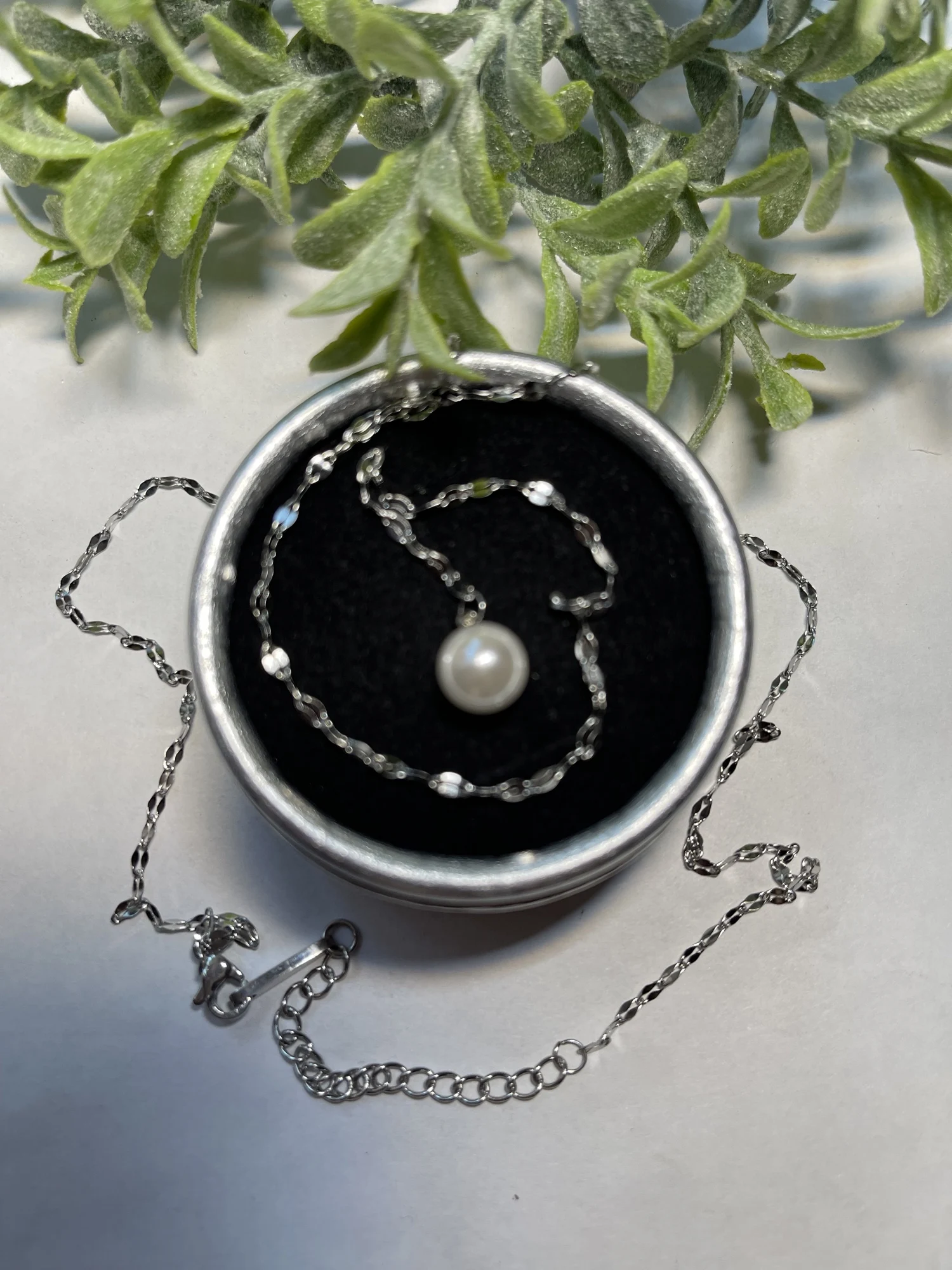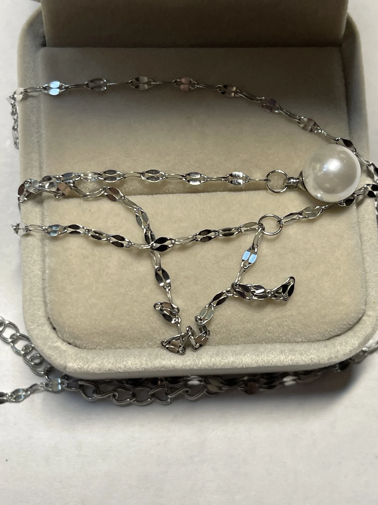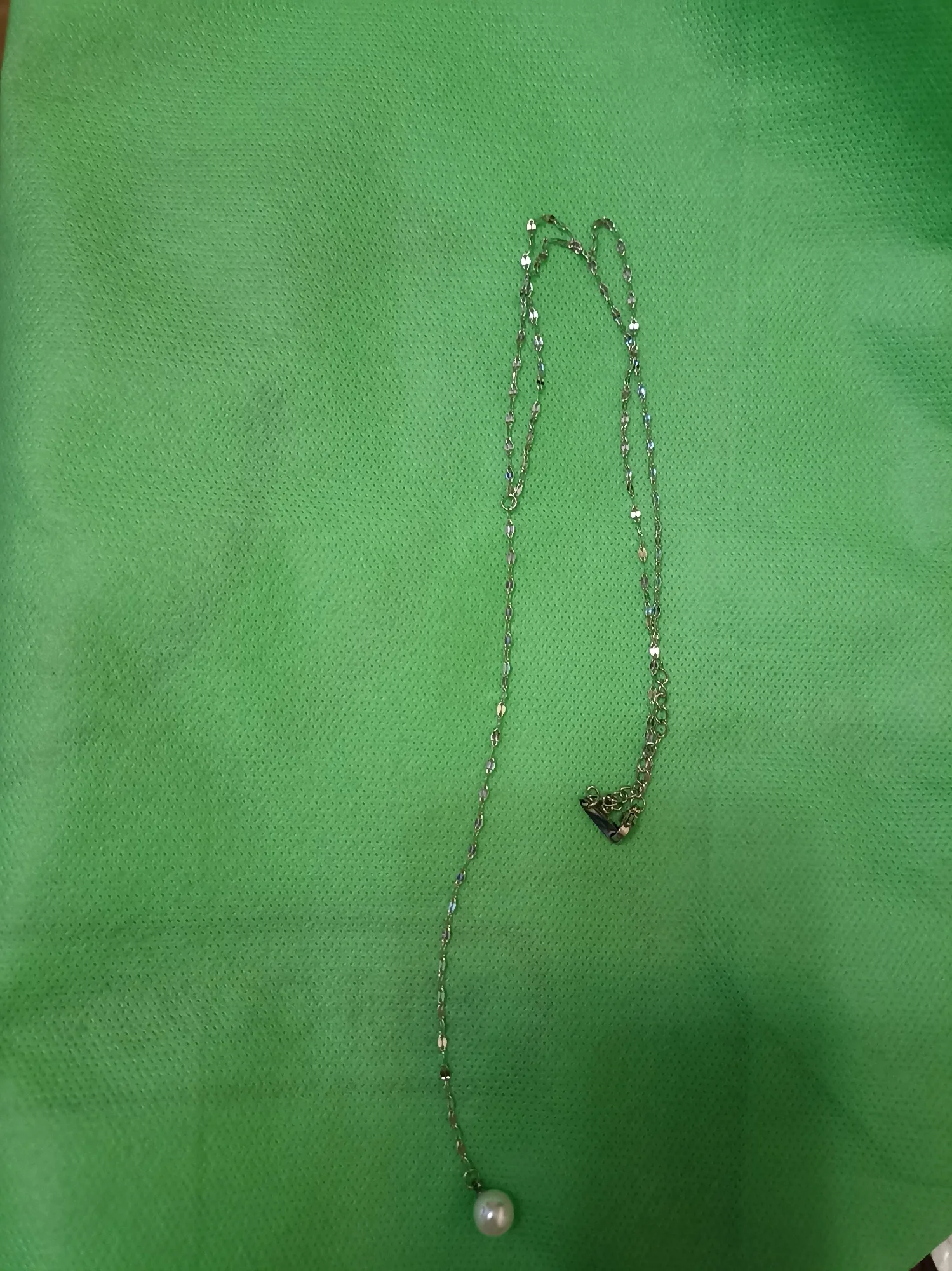 Cute, delicate necklace with a little artificial Pearl, as described by the seller.