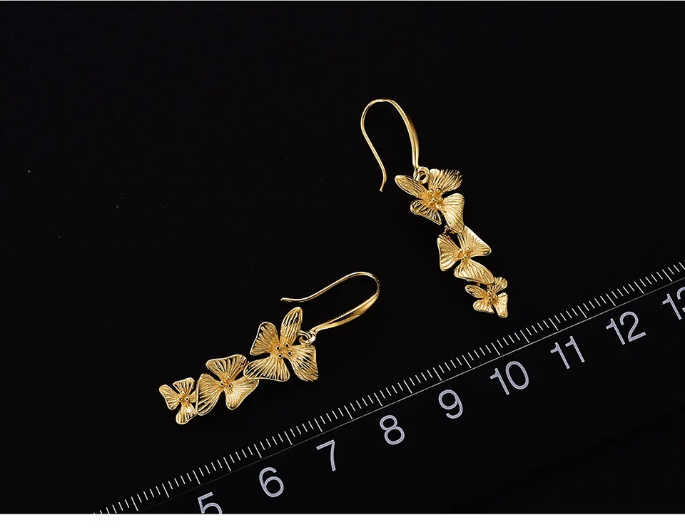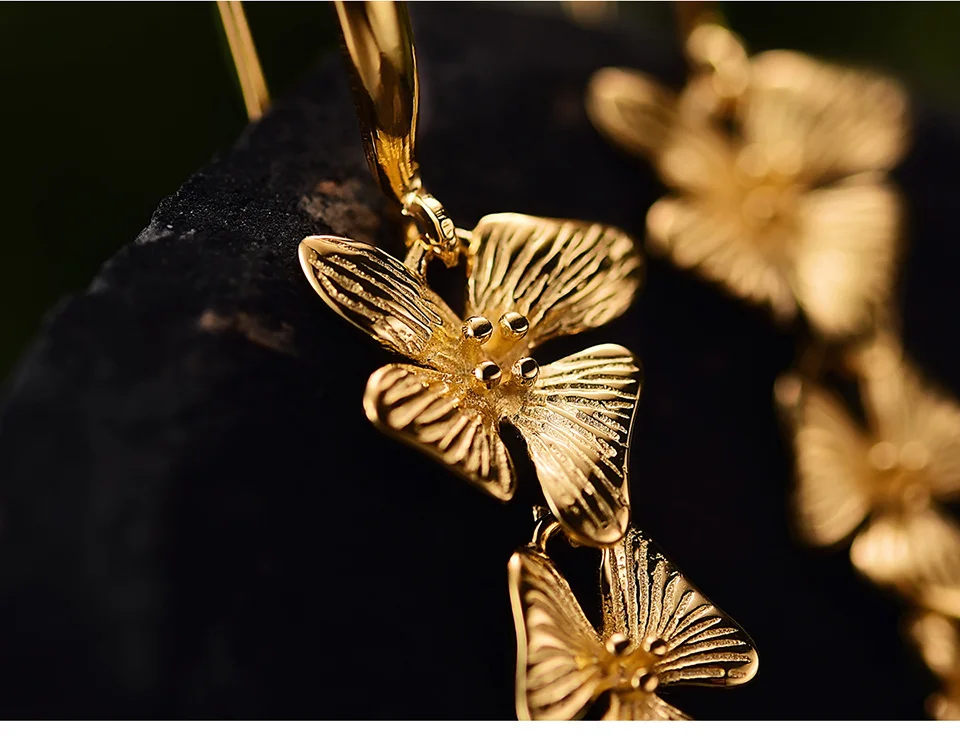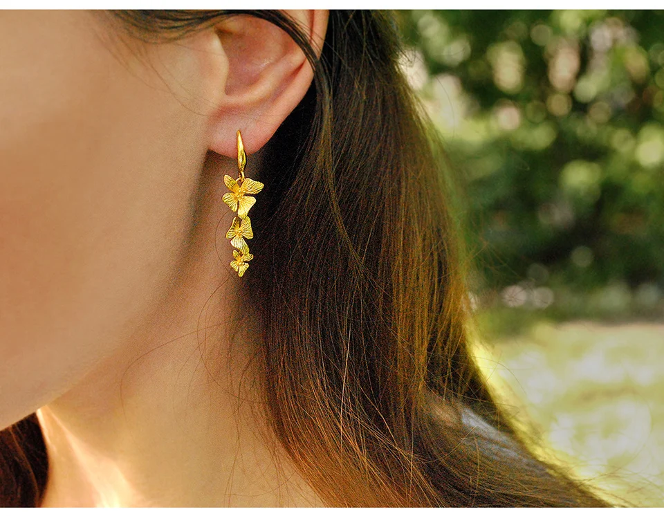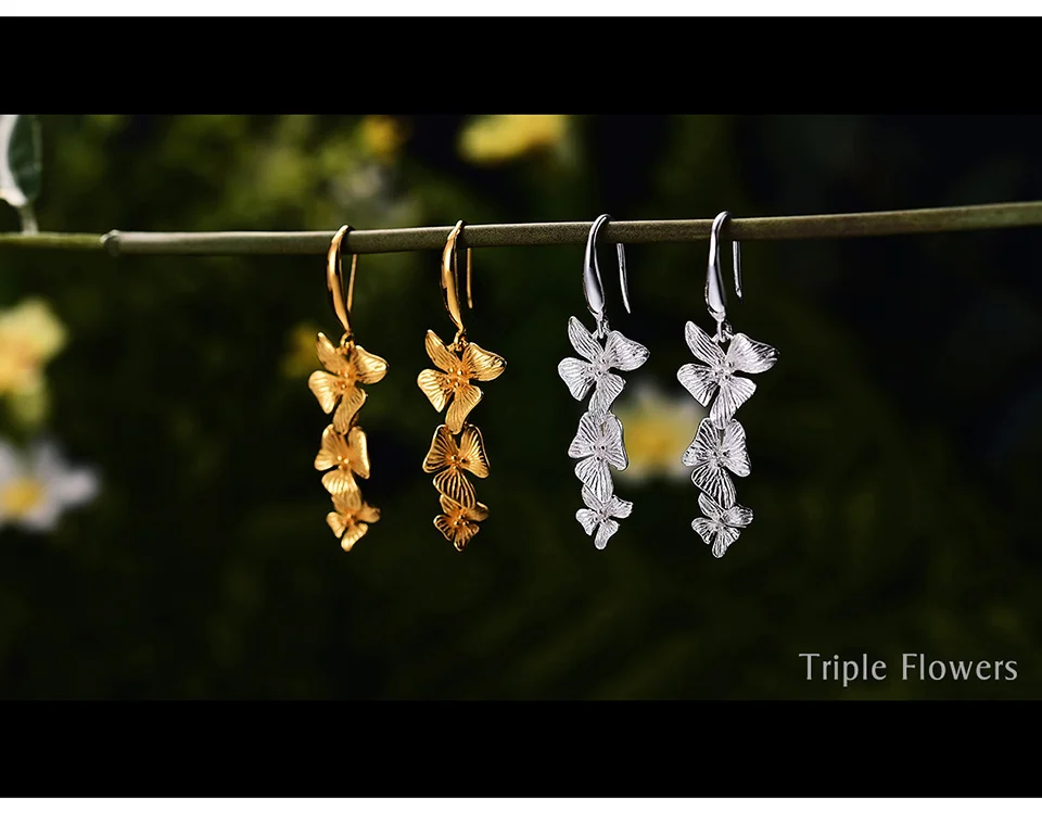 Triple Flowers Earrings , Real 925 Sterling Silver Original Handmade Fine Jewelry 18K Gold Triple Flowers Fashion Drop Earrings for Women Gift.