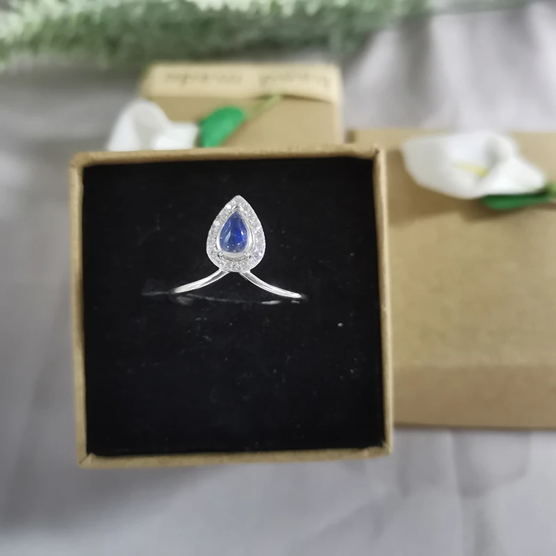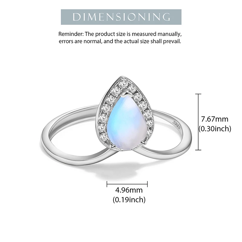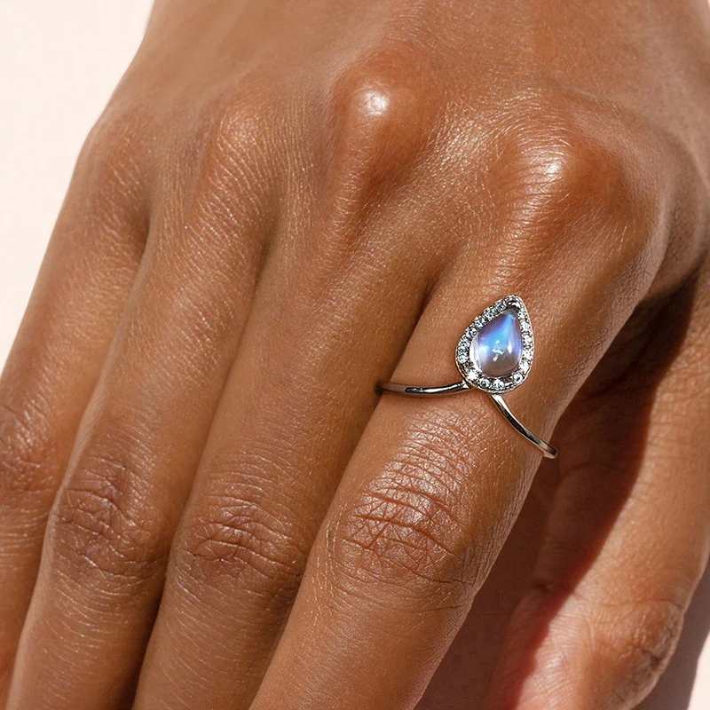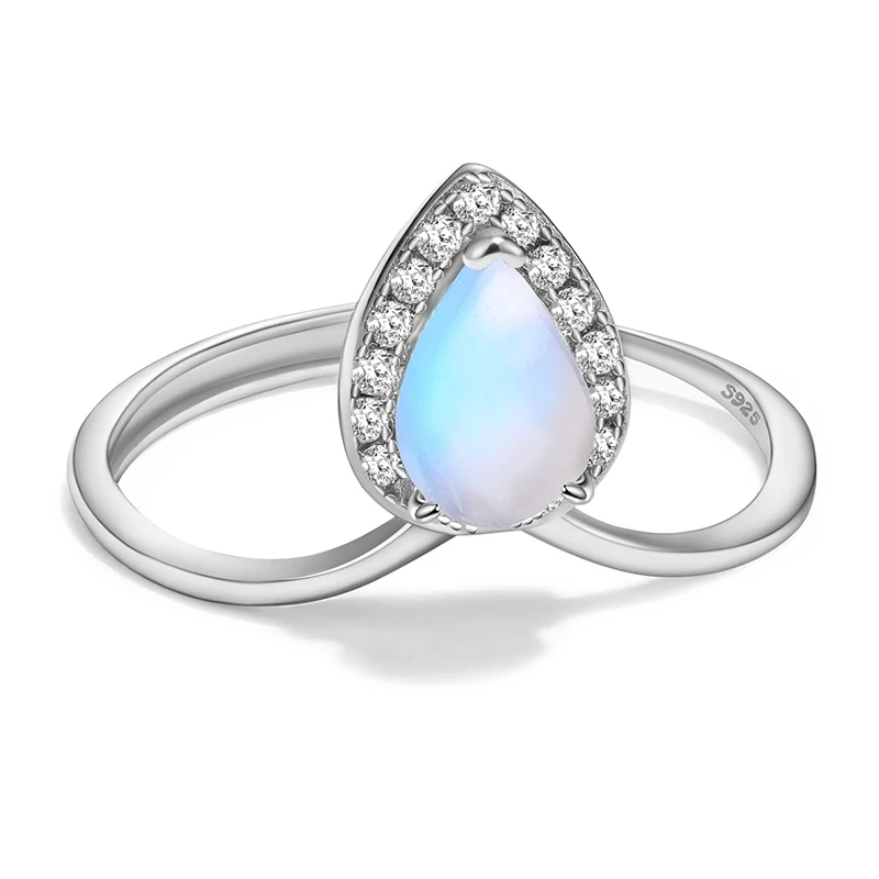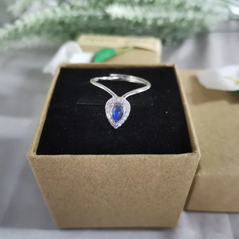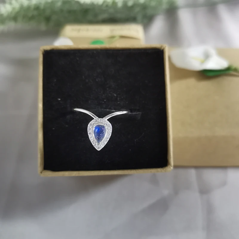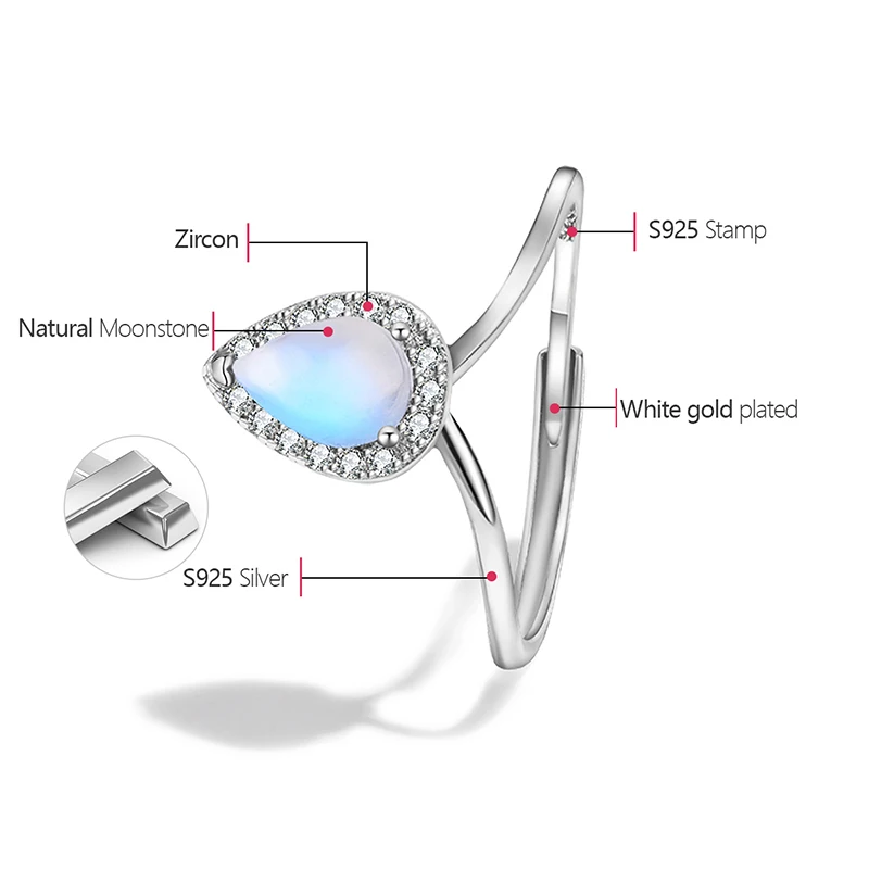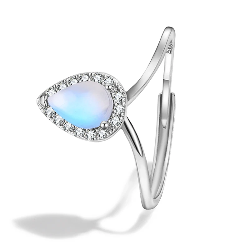 Zirconia Natural Blue Moonstone Minimalist Water Drop Adjustable Rings for Women Real 925 Sterling Silver Fine Jewelry.